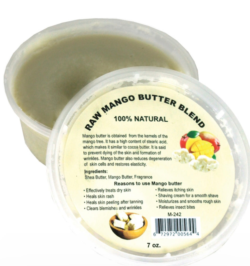 Shea butter is like a superfood for your skin. It has a concentration vitamins and fatty acids that nourishes your skin. It is a great remedy for dry skin. It helps to reduce skin inflammation and combat acne. It boosts the natural collagen and softens and strengthens skin. It reduces the appearance of wrinkles. All of those benefits come from natural and organic ingredients with no dyes or artificial chemicals. Get softer, smoother, more youthful-looking skin today with Raw Mango-Shea Butter. Made in Ghana.